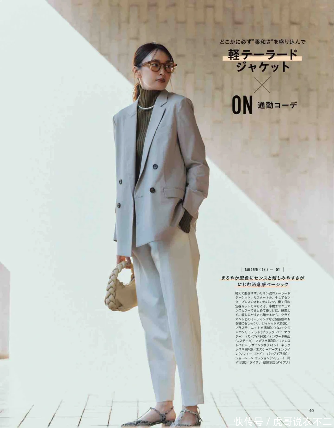 搭配建议:可以选择浅蓝色小西装,搭配浅粉色高腰裤,整体清新又不失优雅。