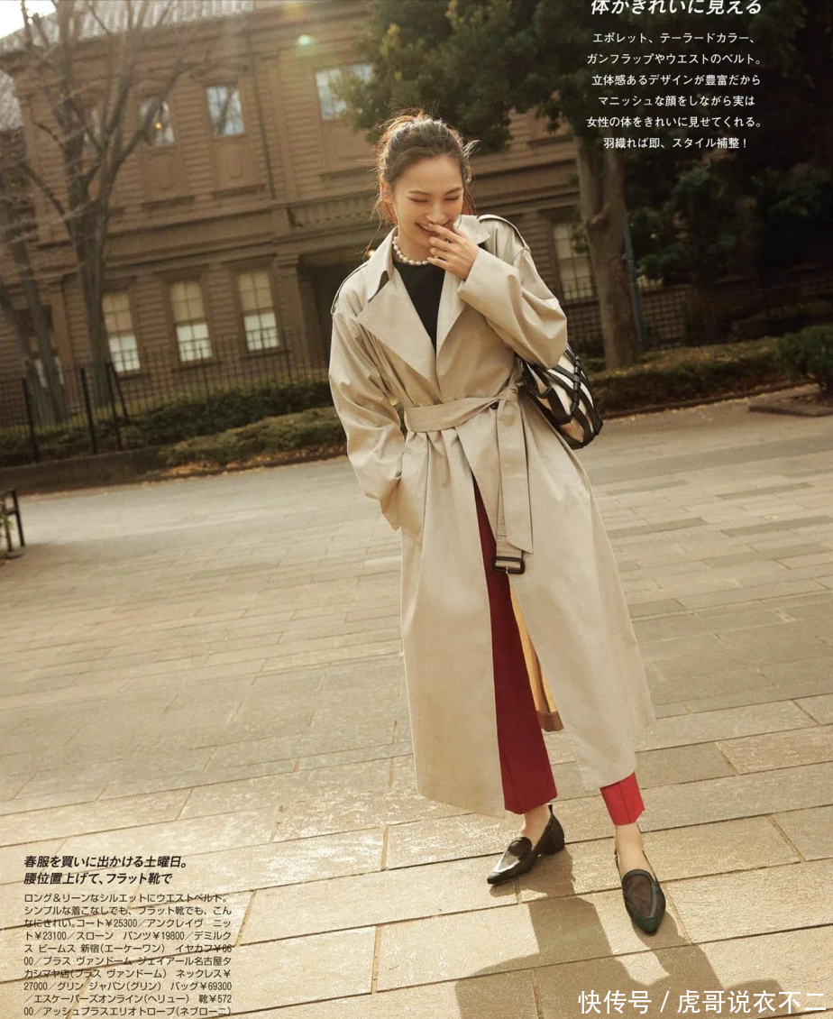 搭配建议:可以选择绿色的风衣,搭配浅蓝色的高腰裤,整体清新又不失优雅。